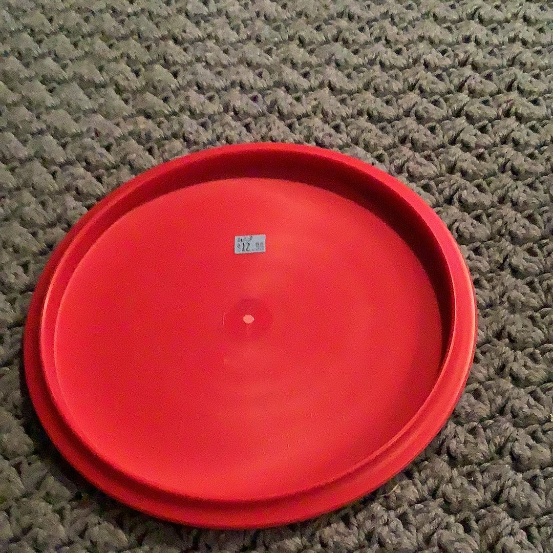 Ruby red disc and metallic blue stamp. Amazing beginner disc and faithful mid range. Fun.